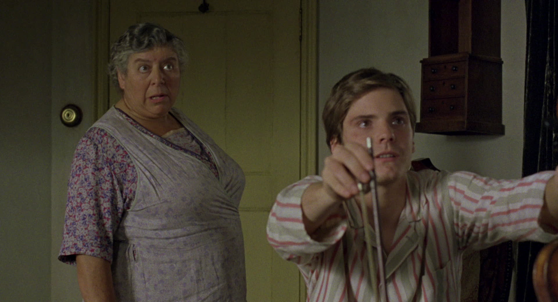 8 K J( c9 I5 q" Q, d D5 B 安德拉是一名优秀的小提琴手,在两姐妹的精心照顾下,他逐渐的恢复了健康。安德拉的英俊和开朗为两姐妹一成不变的生活带来了久违的快乐,但在这个民风保守的小镇上,关于安德拉的风言风语从未停息。与此同时,厄休拉震惊的发现某种久违的情感在内心里慢慢复苏,这从未经历过的情感让她感到不知所措。